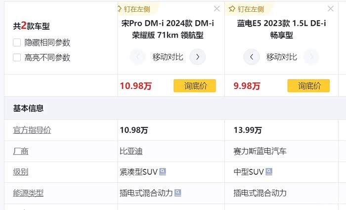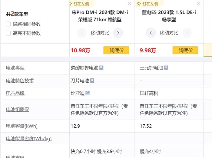 蓝电E5对比宋pro低配,看完就知道怎么选