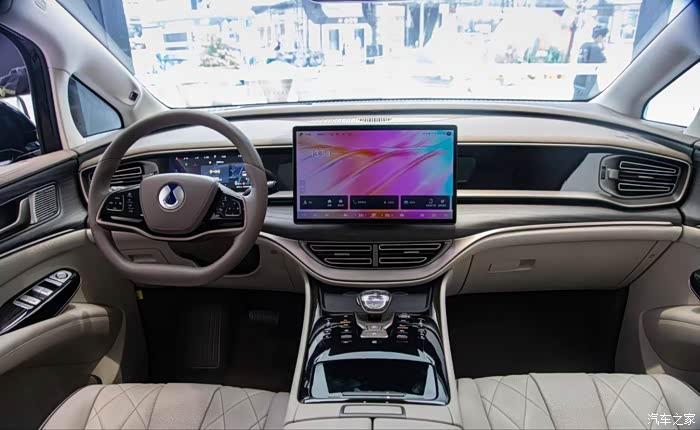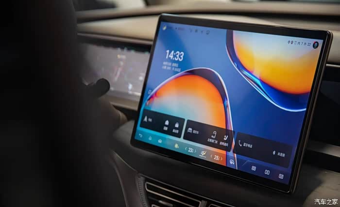 腾势 D9 采用的是一个多屏互联的交互形式,包括位于前排的