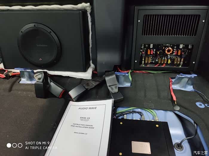 安装完毕,准备整理线材,主驾驶后排靠背正好能放下,发热量巨大...
