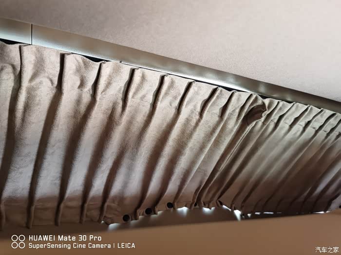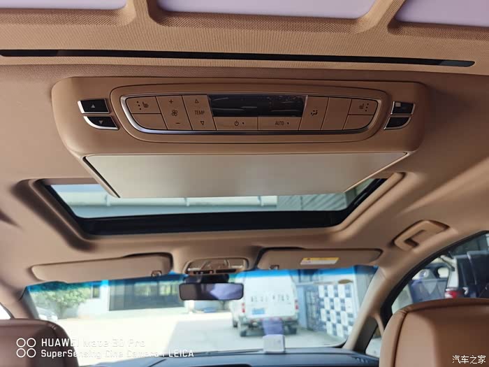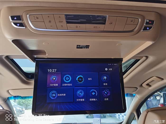 大漠米配色的电动吸顶电视,中间是原车的后排空调按键