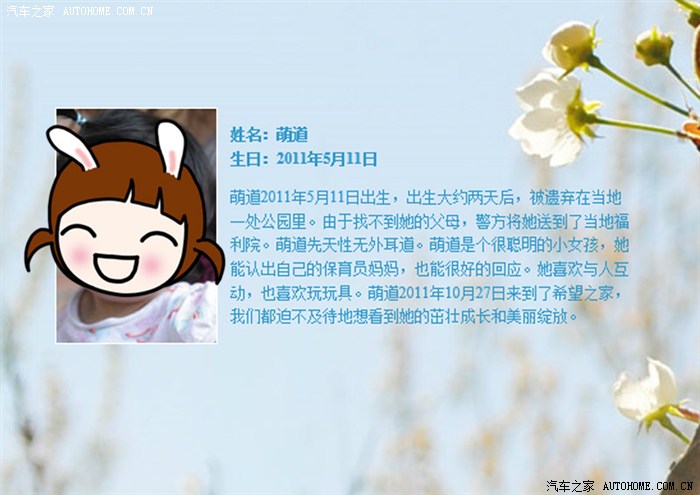 我知道希望之家,是因为我朋友在这里助养了一个叫萌道的小姑娘。她生下来就没有外耳道,几乎听不到声音。