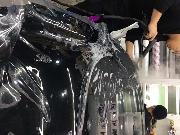 可修复隐形车衣施工中,工时较长,大约贴了6个小时。