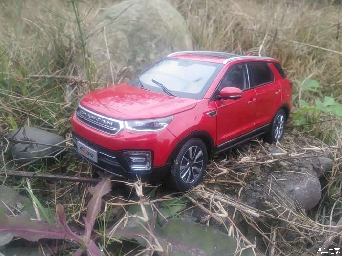 长安旗下的SUV可以这样说,在同级别车型中都是拨尖的,都是颜值相当高的SUV,就拿以下这款老CS55的车型来说,无论是它的外观还是内饰都让大家特别心动,整个外观看起很硬朗,很凶猛,很年轻动感的设计,而内饰虽然大部分黑色元素,但细节上采用了银色和红色条的点缀,让整个内饰充满着运动的气氛,其次CS55作为一款紧凑SUV,其车长达4500毫米,车宽达1855毫米,车高达1690毫米,这样的尺寸让这辆SUV看起高大山,非常讨人喜欢的SUV,它的前脸采用长安家族式的中网设计,那张英文霸气的字母车标将整个车头呈现出威武霸气感,车头大灯和辨识度极高的LED日间灯看起非常犀利帅气,侧面饱满的线条和运动的车身结构设计,太让人喜爱了,车尾动感的尾灯和饱满的设计是越看越喜欢,车内宽敞的空间和动感的设计真不愧是一款颜值担当的车,下面就用我的车模来秀一秀长安这款颜值SUV。