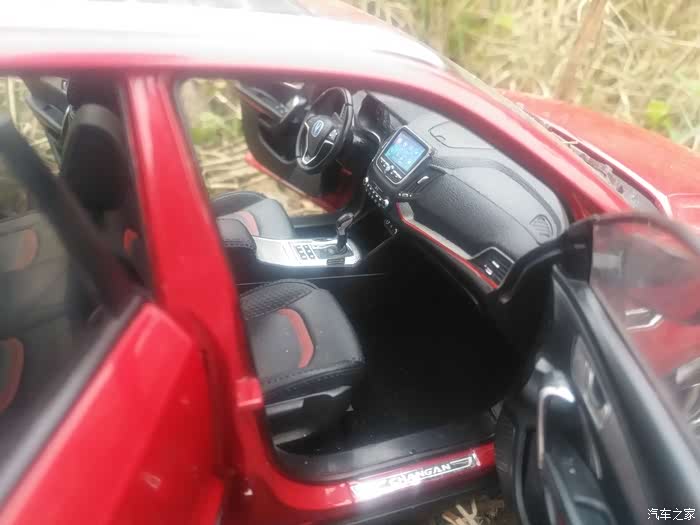 CS55车模秀出很大气,很年轻有活力的内饰设计,红色和银色的点缀增加了运动的气氛感