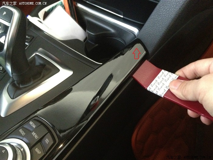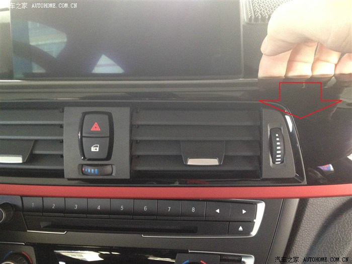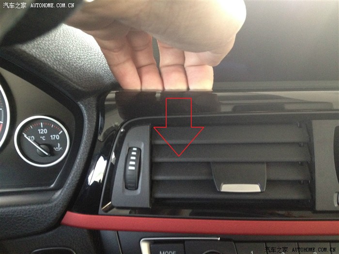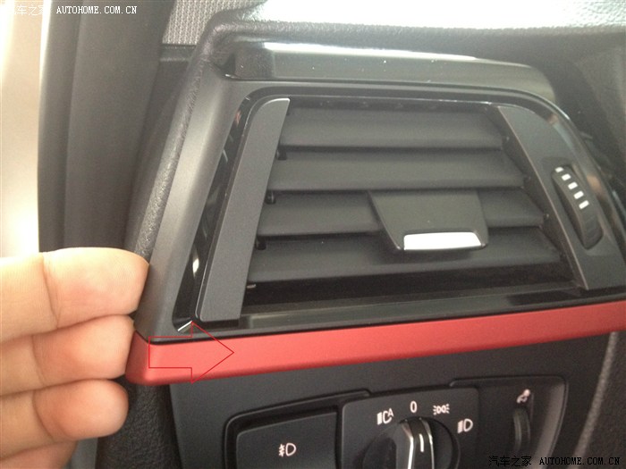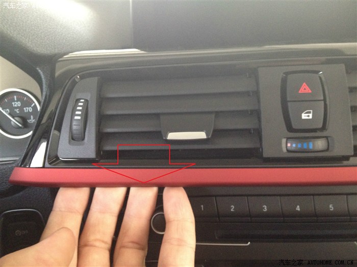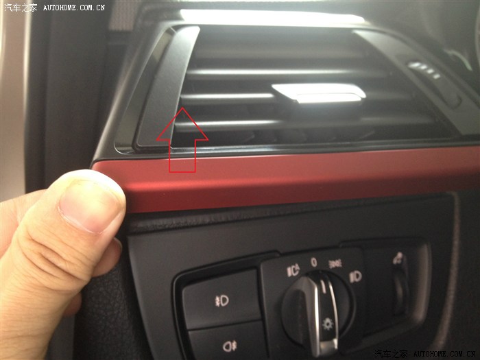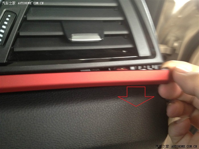 下面开始拆中间的出风口,也是中控台最大的一块面板,同样的方法用手或是撬板从上端下手,用力向外拽与中控台拉开一个缝隙。