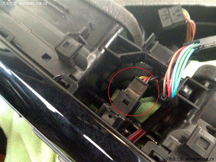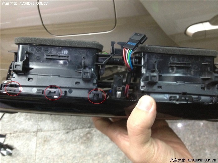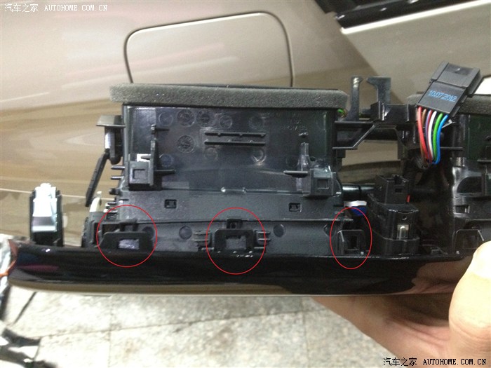 这个面板拿下来后有两个线束连接,下图红圈是第一个卡扣。
