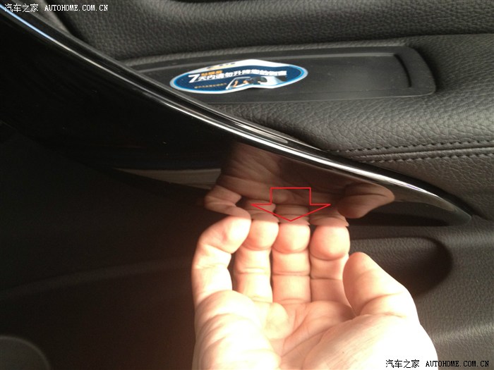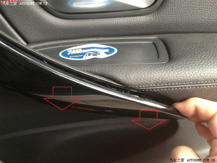 门把手面板两侧分别有两个较长的塑料勾,即使其他卡扣都开了,这两个勾也会勾着,尤其是下面那个,稍微用点力拽出来了。有同学觉得门把手不好拆,可以从两端缝隙下手,用撬板伸进缝里一点一点的划开缝隙就行,不会弄坏卡扣。