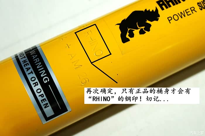 2:桶身的”RHINO“钢印,凡是你购买的犀牛桶身上面没有这个标示的,那么可以确切的表示,你“中奖了”,切记一点,所有的正品犀牛在桶身上都会有这个钢印,反之,市面上仿制的是没有的!