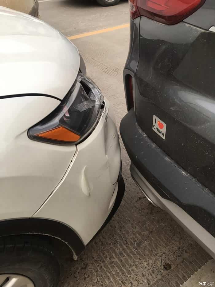 既然是硬派越野车,就要表现的足够硬,这是日系某中大型SUV追尾大灰狼屁股,对方保险杠破裂,大灯破裂