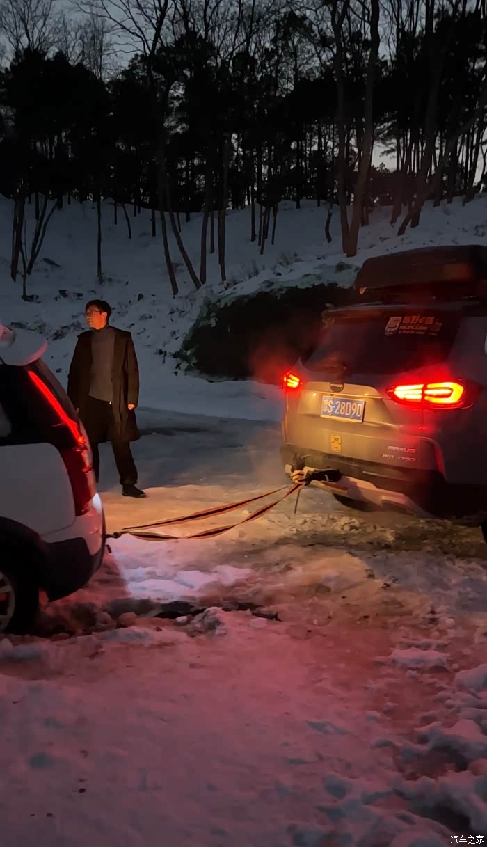 遇到雪地陷车事件,展开救援