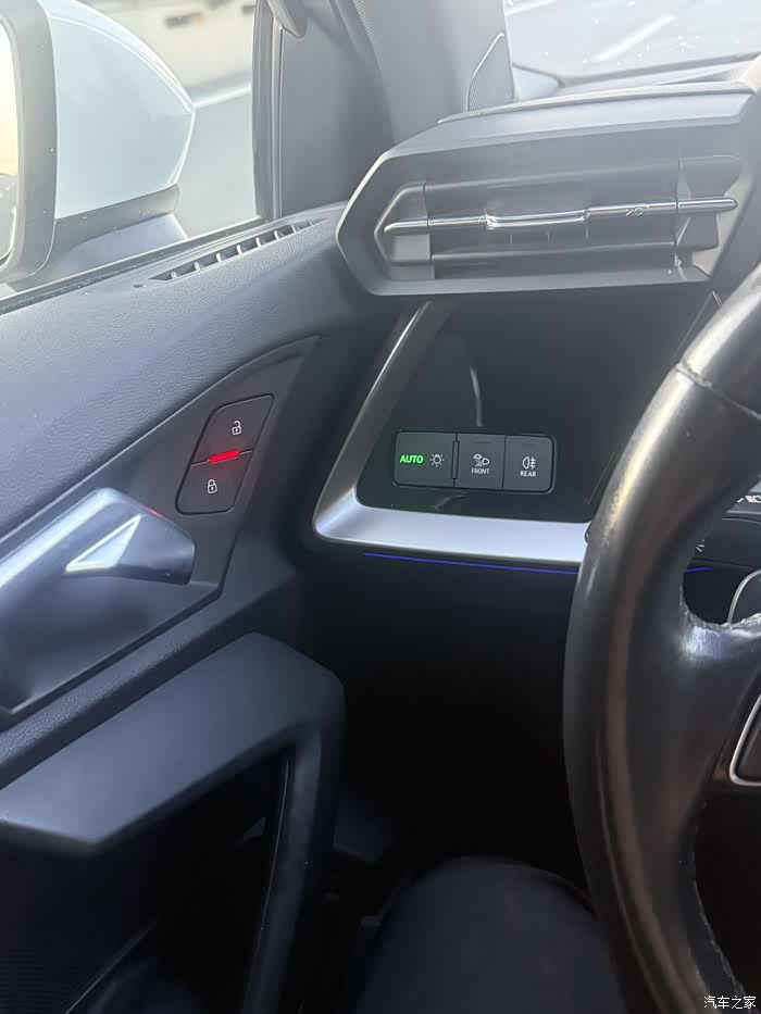 还是自动头灯,空调出风口造型有个性,我喜欢。锁车解锁的按键中间还加了一个指示灯,红色表示锁定车门了。细节体验方显豪华本色