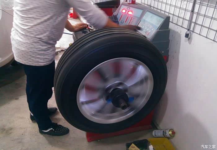 轮胎动平衡,换轮胎一定要到有这个专用机械(2)的店才行。