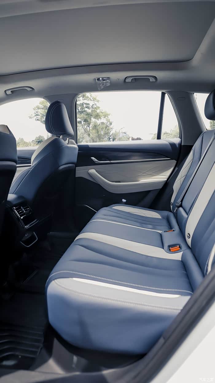 皮质包裹的座椅,不仅设计宽敞,坐感也很舒服,坐在车内满满的豪华感。