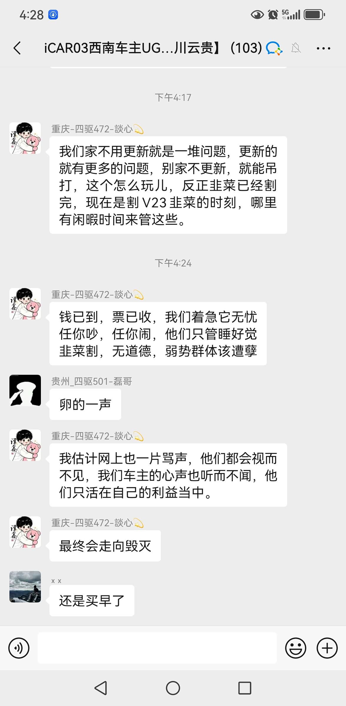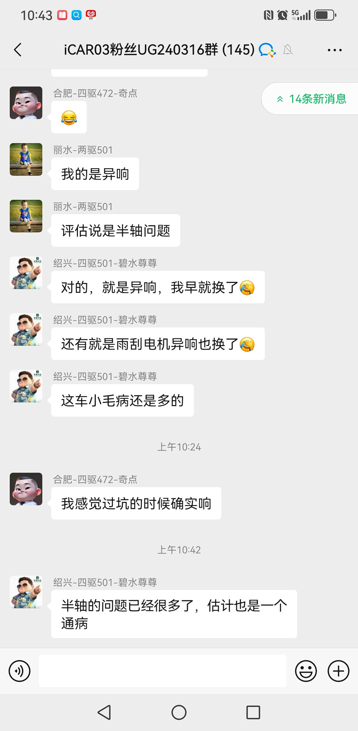 iCRA这个品牌在广大车主心目中就是碰不得,太伤害广大车友。iCAR03的第一批用户真实反馈质量控制太差!太伤03车主的心!看看iCAR03的质量控制:雨刷电机异响换了,水泵异响换了,传感器换了,充电受限,后备箱漏水又修,车身异响,玻璃窗受降问题严重,雨刮异响,天窗胶条开裂,天窗关不上,车机死机,几个月更换半轴,手机无线充电不停断开,五千公里方向机需要打润滑油!车机设计水平比老年机还智残,导航乱跑又加装什么模块…已经把车友们整来很无语了!电控技术太差城区续航打对折,太垃垮!高速路上直接骨折~5折!号称电动纳智捷的爷爷。一个垃圾实验品!材料供应商全部关系户+亲戚,品控连七,八线品牌都不如,严查该品牌供应采购链条,销量差,入不敷出,各地售后服务网点陆陆续续关停,严重影响奇瑞汽车品牌形象,为避免更多车主误入歧途,请求奇瑞公司该撤销这个品牌就应该撤销了。后附证据