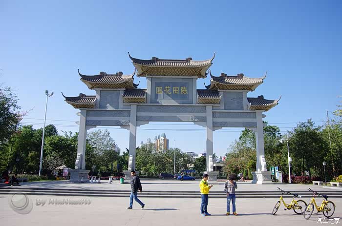 小广场前方就是陈田花园的牌坊了,还是蛮有气势的嘛!牌坊的外面就是车水马龙的白云大道!牌坊内外的反差相当的大!