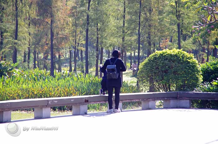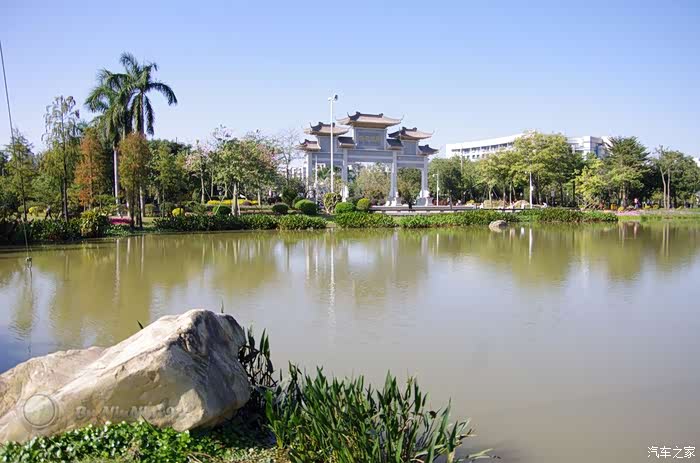 小广场后方是一片人工湖,石头上有一只翠鸟您看到了么?