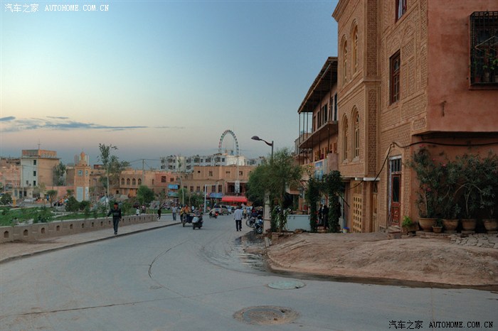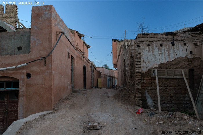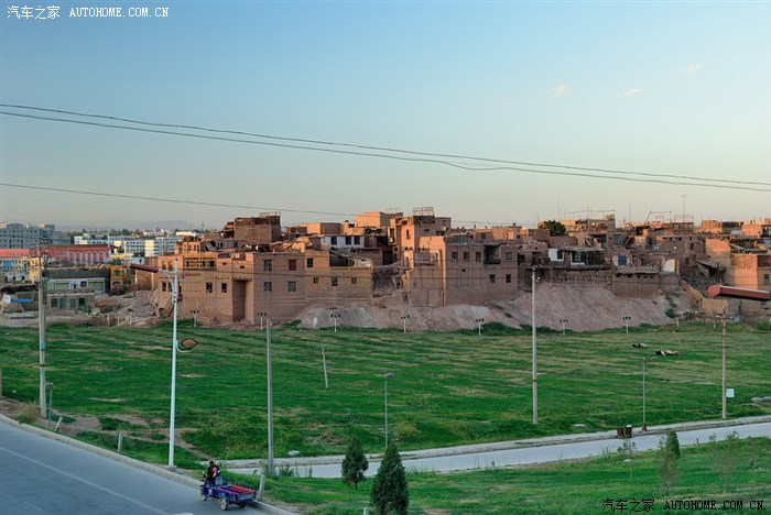 维族百姓居住区,高台民居的马路对面