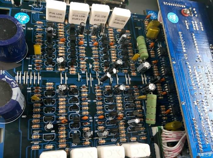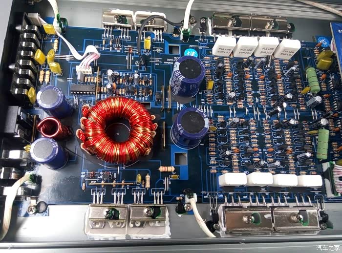 是这我一直在用的四路功放,马路乐的,功率也可以4×80W的,价格也很实惠,效果很好,人声和低音都发挥的不错,别以为这东西不好,不比某些品牌国产功放差,看里面你就清楚,我特地拆开看了下。