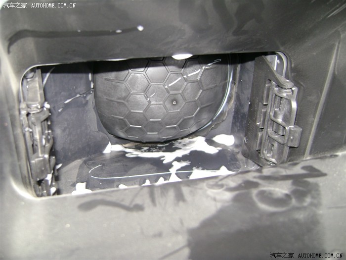 副驾驶下方有一小盖可打开,防止泡沫积聚。