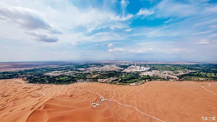 在城市也能看到沙漠?Yes。从哈密出发到鄯善后,我们来到了中国离城市最近的沙漠—鄯善库木塔格沙漠<:-16,-97,-113,-100:>?鄯善城区与库木塔格沙漠上真正意义上的零距离。“库木塔格”在维吾尔族语中是“沙山”的意思,约1880平方公里的沙漠以沙山为主。进入沙山公园,就踏进了这片连绵无尽的沙漠。