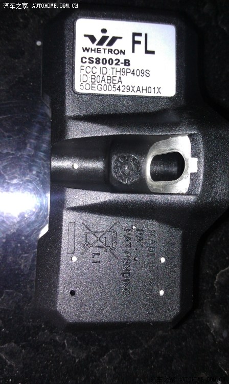 产地台湾,就是这个东东在轮毂内,在轮胎里面测胎压、温度,通过无线方式发射到主机,再在防眩后视镜上显现。