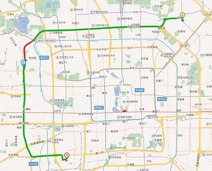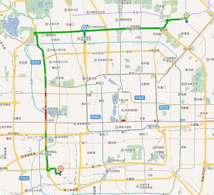 基本上要走北四环辅路,或者北四环,北三环辅路各一半的路程。