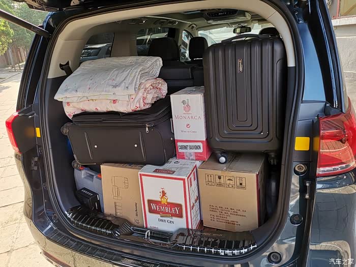 第三排座椅调到最前面,基本不影响前三排正常坐人,最多可竖着放30寸行李箱1个、26寸行李箱1个,平放2个 26的行李箱;26寸行李箱可以竖着放4个,再摞着平放2个,上面还可以放其他东西。