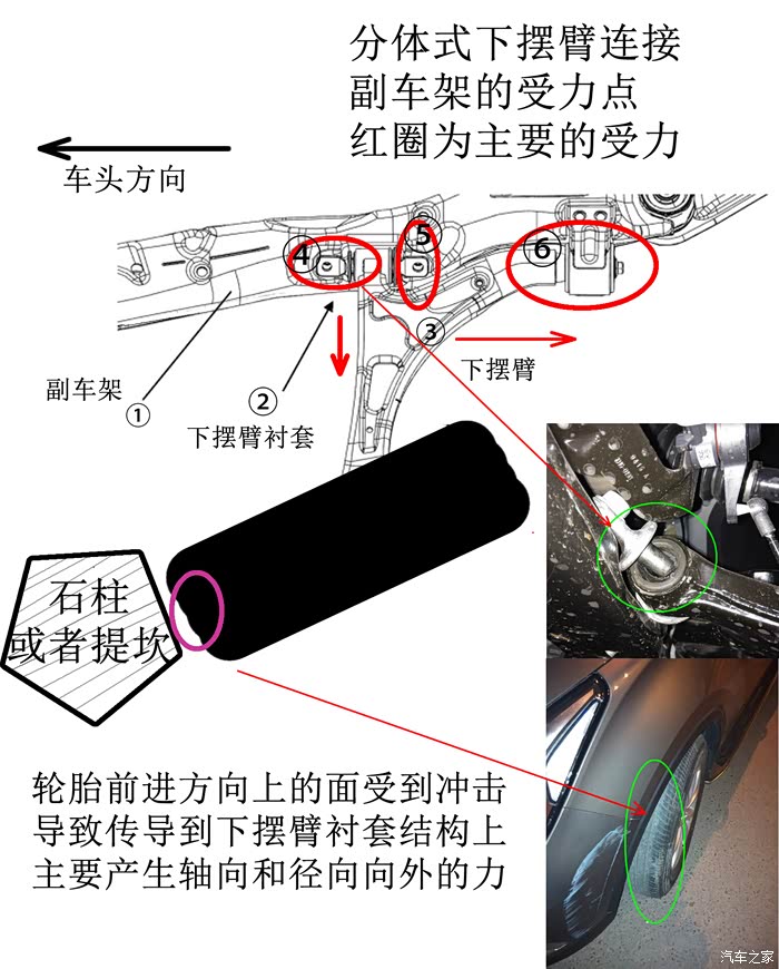 怠速情况下,车轮前进方向上,打方向以后为何碰车轮就导致这个结构失效?我们可以从下图得到启示!