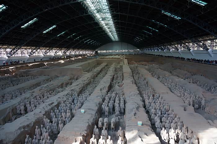 秦始皇兵马俑,亦简称秦兵马俑或秦俑,第一批全国重点文物保护单位,第一批中国世界遗产,位于今陕西省西安市临潼区秦始皇陵以东1.5千米处的兵马俑坑内。