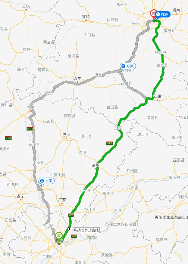我们选择的路线 重庆-达州-万源-安康-西安。全程高速只是隧道比较多,路况很好。