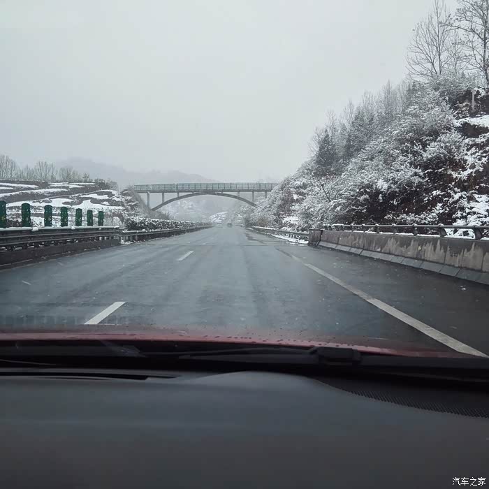 高速路两边满满的积雪的。还好路面上没有积雪,不影响行驶。