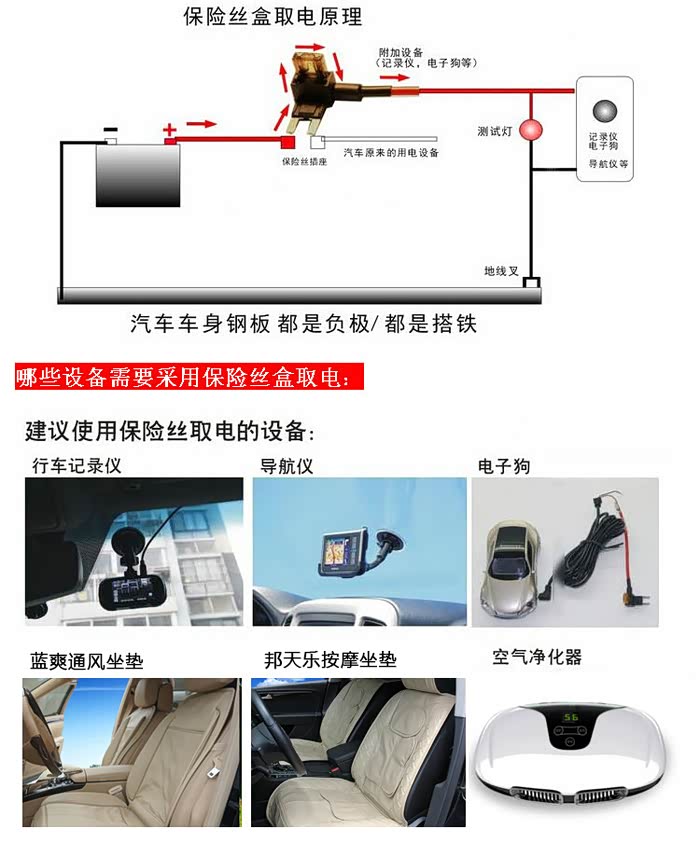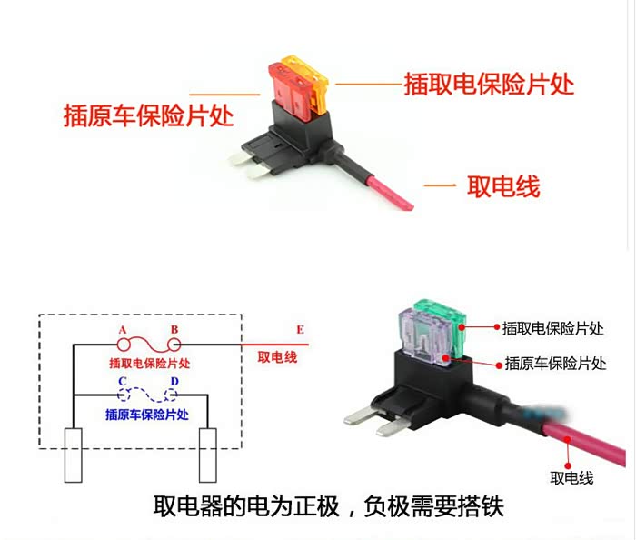 这个就是记录仪的保险盒取电线和电源线了。红正,黑负,这个大家都知道了。
