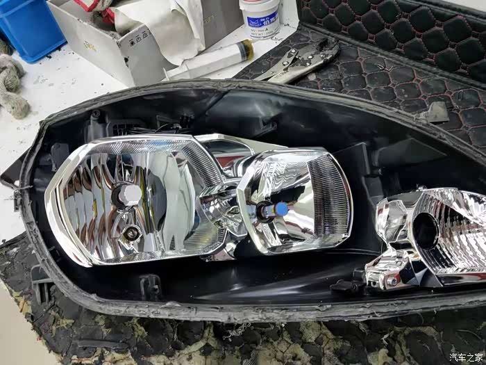 大灯打开,原车的反光碗