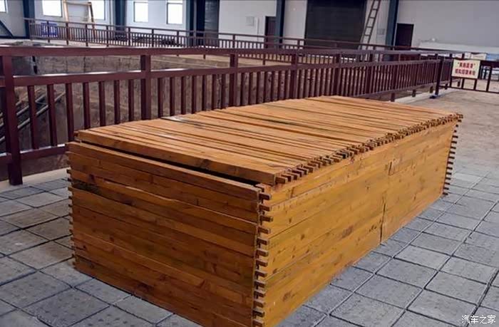 跟随导游直接下到,复制的棺椁内部,看看当时秦景公“黄肠题凑”内部是什么样的。