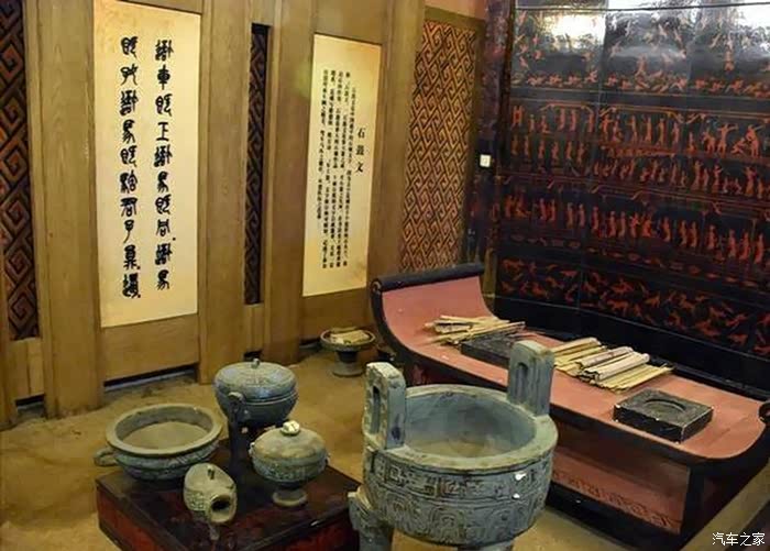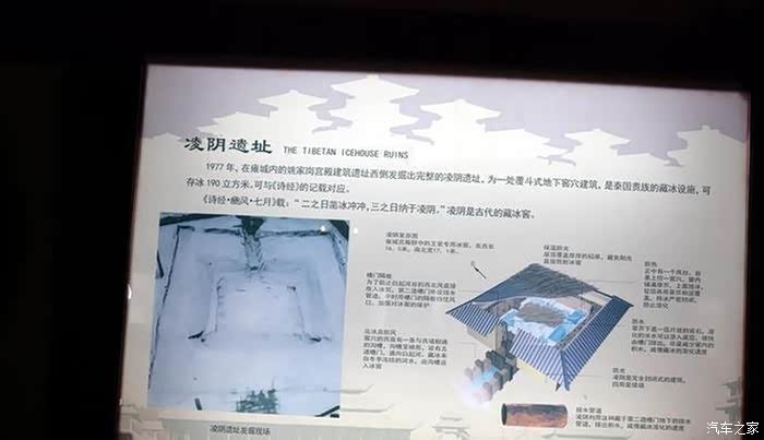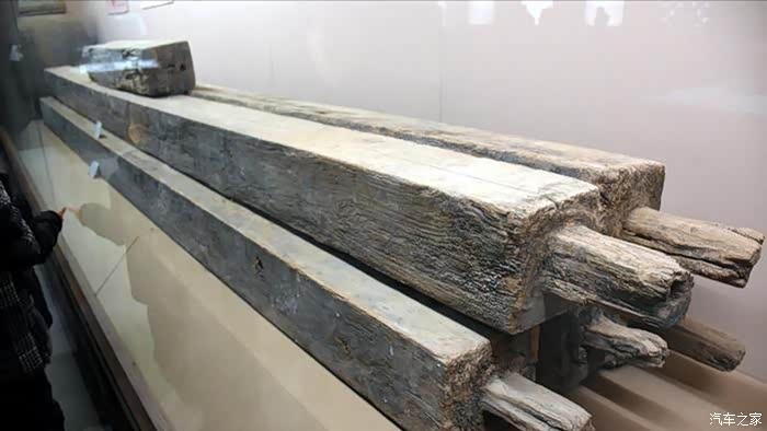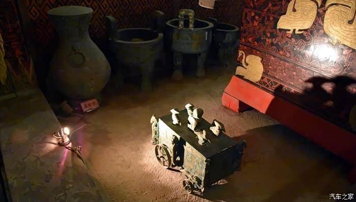 穿过甬道直接就来到了陈列室,可能是为了保护文物的需要,馆区复制了景公的“黄肠题凑”并按照先秦葬式的按照比列1:1的方式复制了椁室里面的情况。
