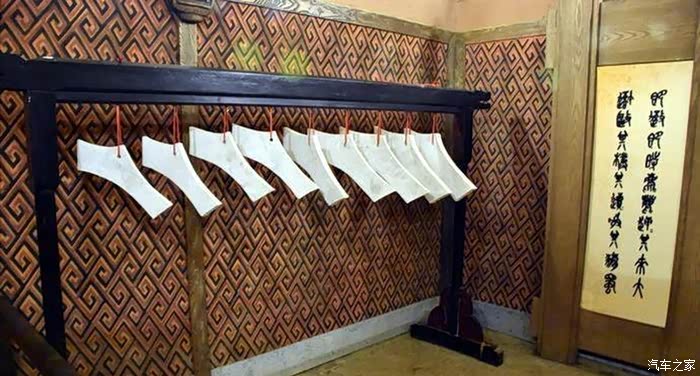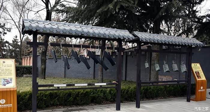 两边是复制出土的石磬和编钟,忍不住上前查看,原来是这里是供游人了解先秦文化的一部分,是可以敲响的。