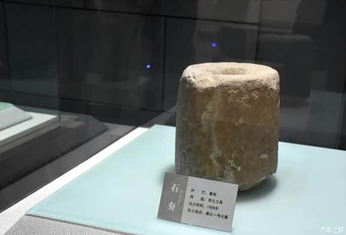 当时夯土的工具,如今天的压路机一样,只是这件工具被发现与大墓台阶的2层,旁边还有一具 尸 骨,应该为大墓回填后被sha掉作为祭祀的奴 隶或者工匠。
