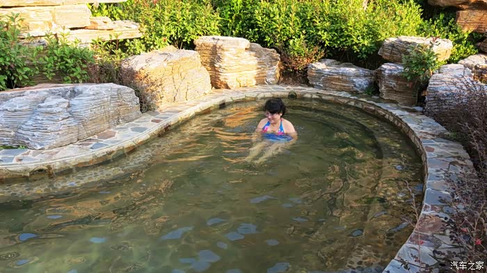 在这里有一个温泉游泳池,我们还是第一次在温泉水里面游泳呢。