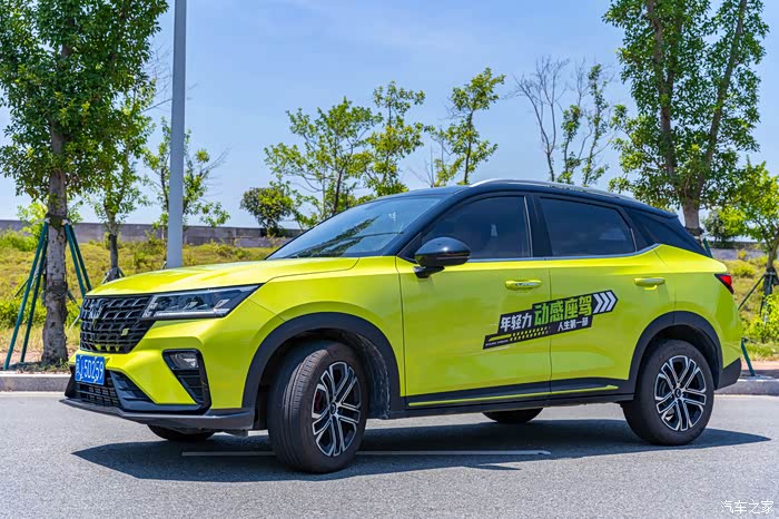 这辆车子定位是年轻人的第一辆SUV,从外观以及设计上能看出这辆车子年轻化、运动化,尤其是绿色的车漆版本,符合年轻人喜好选择,颜值在同级别还是很能打,方正造型的车头配备了大尺寸格栅,飞翼式镀硌格栅辨识度高