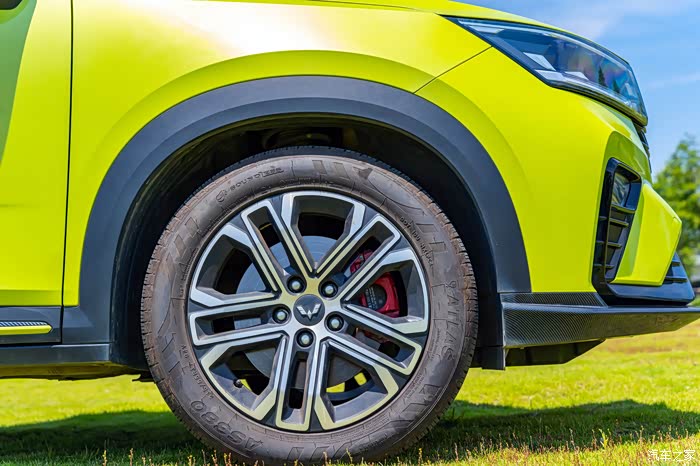 五辐赛车风格设计精车轮毂、215/55 R17的轮胎,外加红色卡钳加持,彰显性能与运动视觉效果