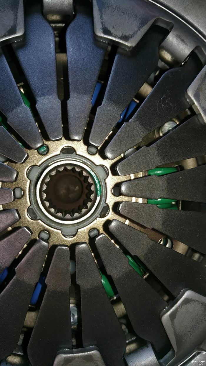 拆下上次汽修厂装的离合三件套,离合片并不装反,是离合三件套有问题导致不分离。才上几天,没开几次,已磨损。