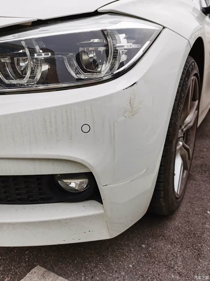 前杠左侧被蹭,露出底漆了。说大不大,说小也不小