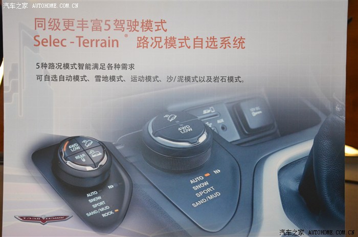 Jeep自由光全系标配Selec-Terrain路况模式自选系统,同级最丰富的5种驾驶模式,只需通过一个中央旋钮即可通过12个电子系统的协同调节,随时转换车辆性能取向,面对公路、雪地、沙地、泥地和岩石各种路况,发挥最佳性能,带你突破城市生活的固有边界。