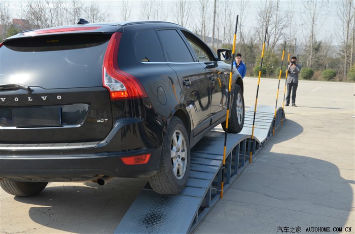 第一台测试车为同价位 同排量的奥迪Q5 很遗憾 在侧滑实验中轮胎一直在空转,后溜加速通过。同样在交叉轴测试中依然如故,勉勉强强通过,而沃尔沃X60的实测并不尽人意,甚至连Q5都不如,交叉轴测试根本就没有通过。