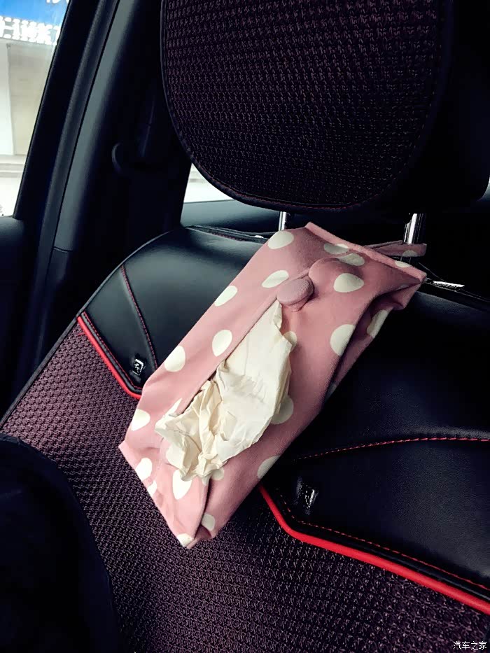 纸巾袋,布的,粉粉的,和那些挂件同色系,要粉就粉到底吧
