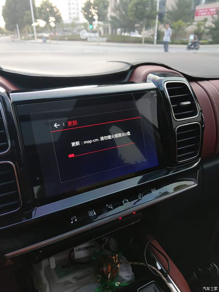 然后插入前排USB口,发动车辆,关闭发动机启停 稍等一会会提示发现地图更新文件,是否更新,选是。然后就开始升级了,升级大概需要20分钟。