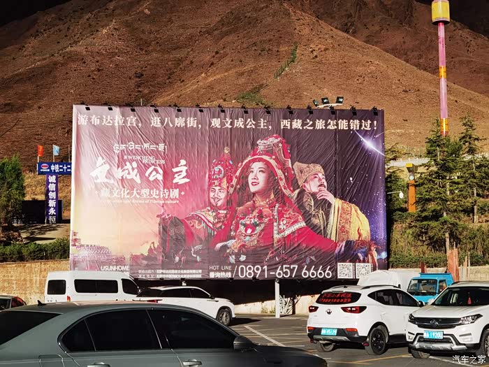 品尝完美味的正餐,我们并没有去布达拉宫,而是来到了文成公主实景剧的演出场所。在这里可以看到布达拉宫的全景,虽然距离相隔甚远,但依然能感到布达拉宫的雄伟。