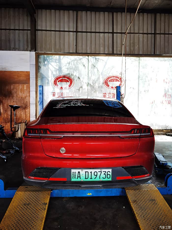 来到4S店检查车辆情况,用升降机将车辆举起来,看看底盘有无受到损伤。事实证明我多虑了,我们这次出行车辆安全可靠。