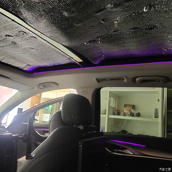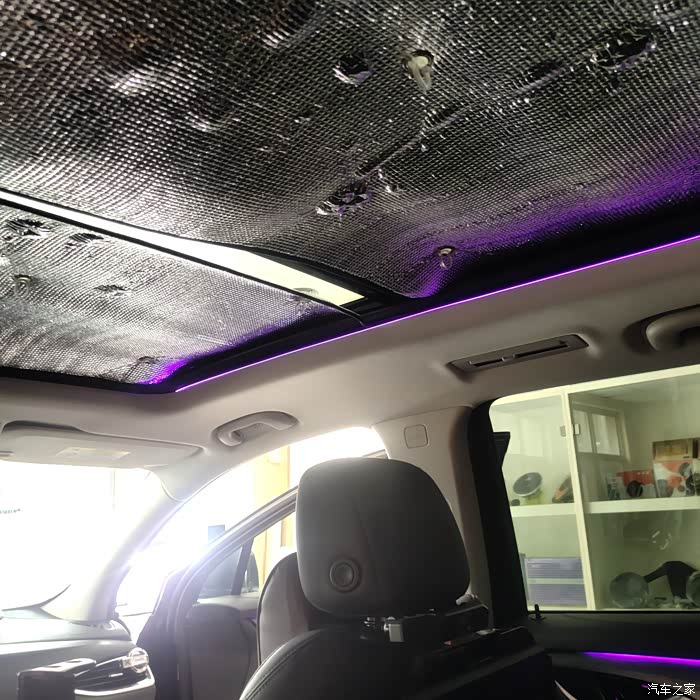 天窗氛围灯是八牌的,一开始想整个LED的灯条,或者是柔性灯带,师傅说时间长了会卷边,