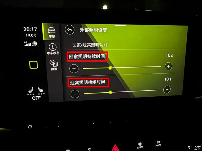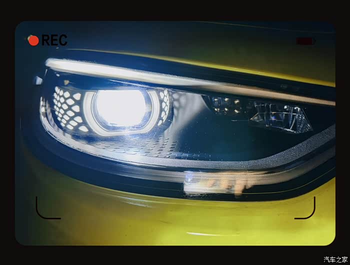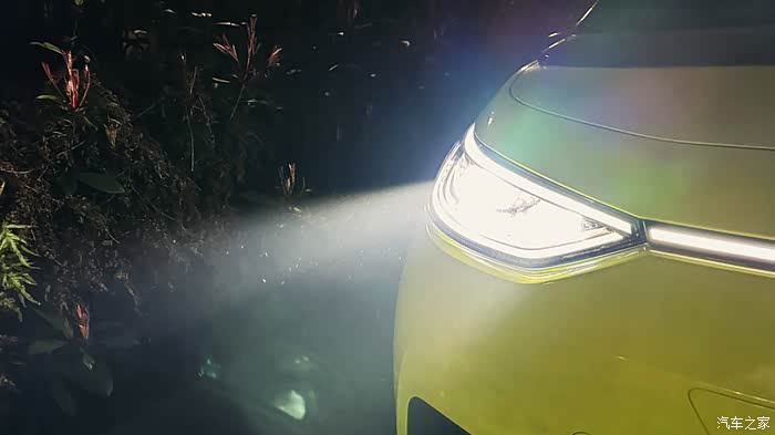 下车进行实际测试,通过照片,肉眼可见,远光灯的亮度。但是在遇到对向车道车辆它就会智能调节灯光的角度,避免对对方车主造成视觉干扰。